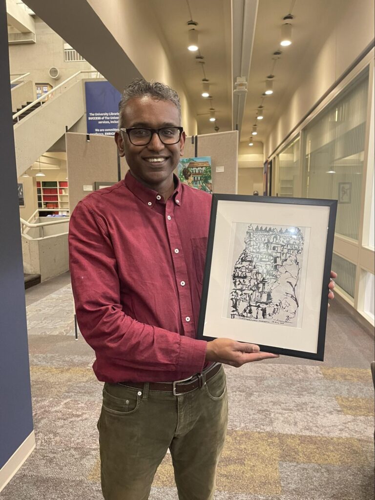 In his artist description, Natarajan describes how he had no formal training, but took his appreciation of the arts into social work as a creative way to engage with clients. His pen and ink sketches have been featured in prestigious qualitative research publications.